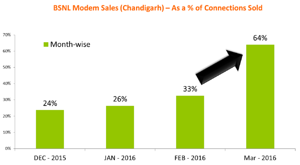 Objective of this POC (Proof of concept) was to increase the subscriber base of broadband connections and increase the sale of BSNL owned modems for BSNL in Tri City Chandigarh, Mohali and Panchkula. After detailed working, Pragyawan have deployed their team of appx. 100 members to work on this POC with BSNL local staff. Pragyawan comprises a perfect mix of experienced consultants and dynamic youth—resulting in a potent combination of stability and aggressiveness. Duration of this POC was January 2016 to March 2016 (3 Months).